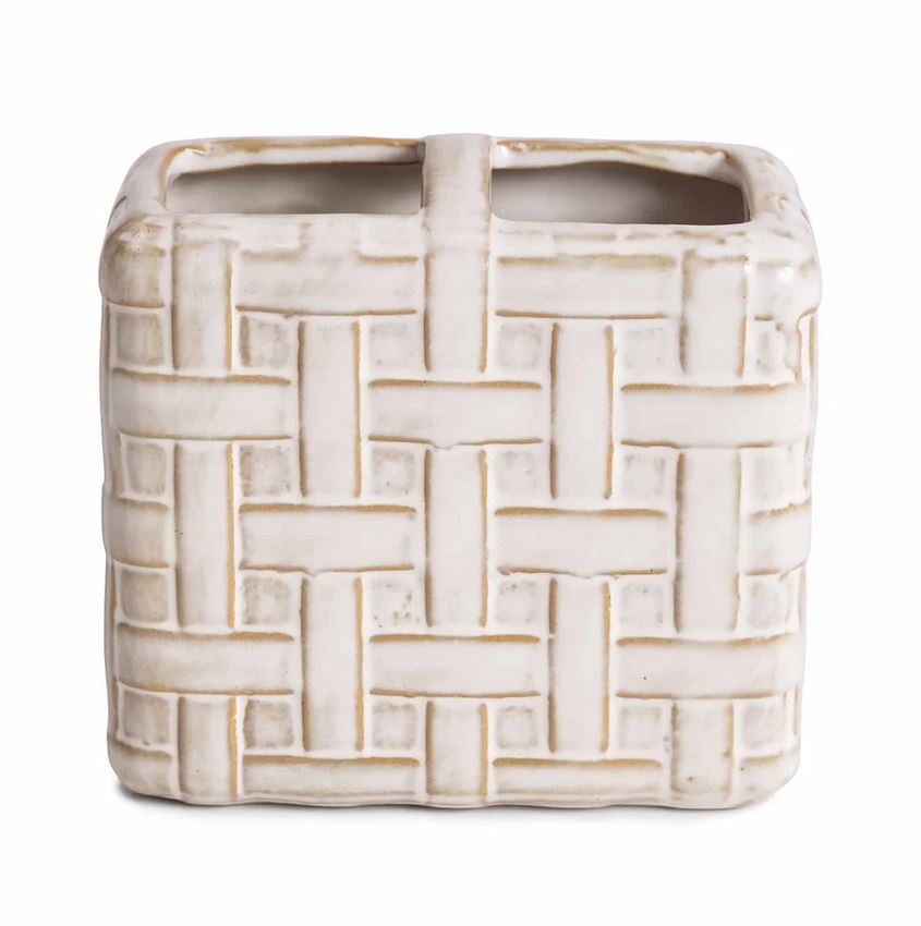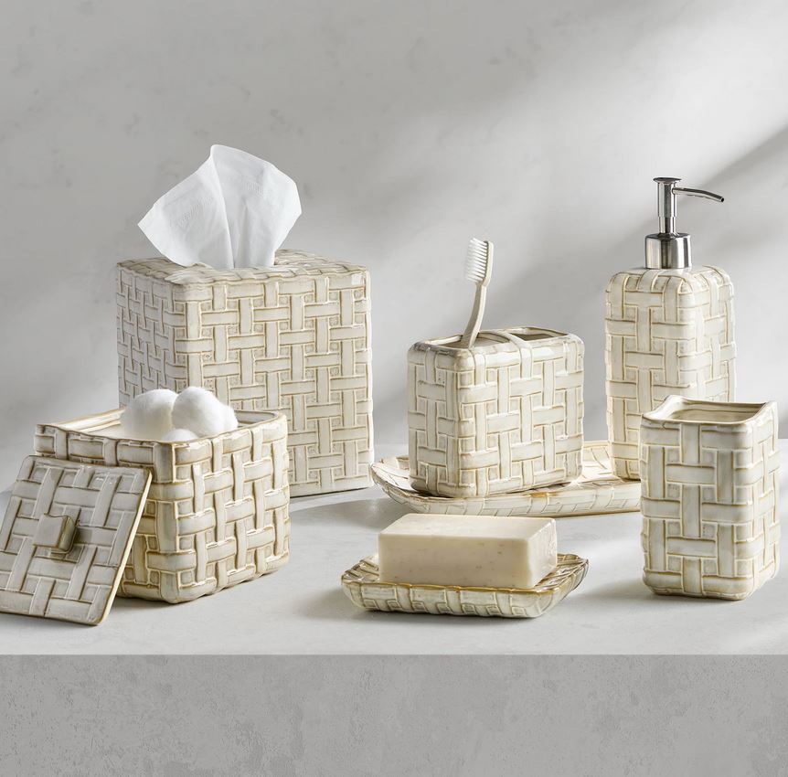 Crafted from embossed porcelain and inspired by woven raffia palms, this Kassatex Cane bath accessory set adds a feeling of natural refinement to the bath. Imported.
