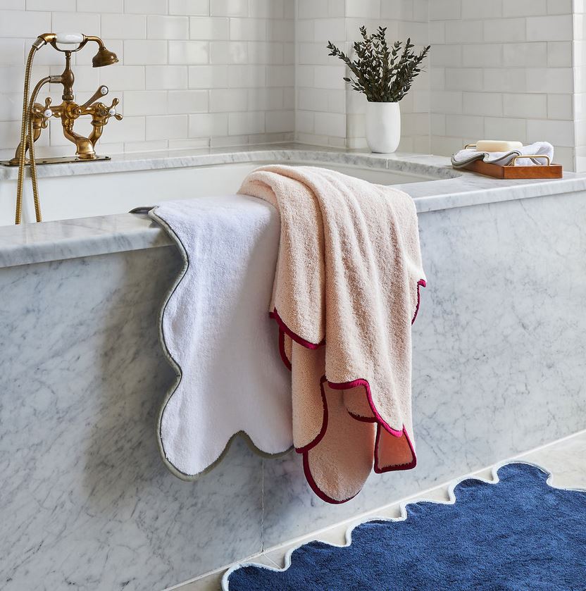Inspired by the whimsy, ornate, and colorful products found on Chairish. Each towel is trimmed with scalloped details and features cottagecore-inspired hues for a collection that brings a pop of juicy sunshine to any bathroom.