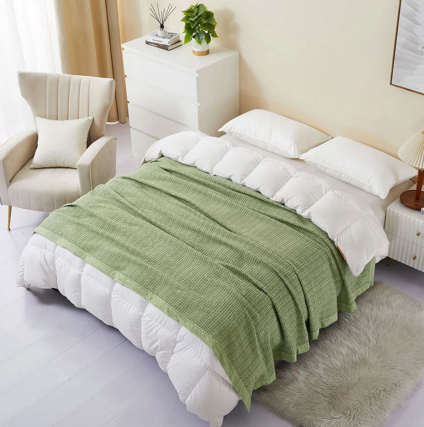The Daniadown Eros ‘ladder waffle’ blanket adds a wonderful textural element to your bed while boasting a clean and modern look.  Use it as an extra layer in the winter for warmth, or as a lightweight blanket in the summer.