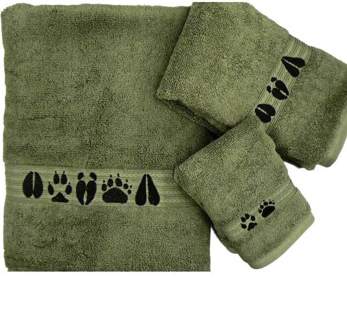 Paw and Hoof prints you would find in the forest. Now you can follow them right into your bath on these 100% Egyptian cotton Moss towels.
