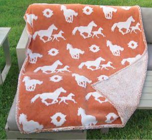Freedom, a beautiful Running Horse Design in Jacquard Sherpa. Terracotta & White tones.  Cuddle Up.  You will stay warm all night with this plush, super-soft blanket.