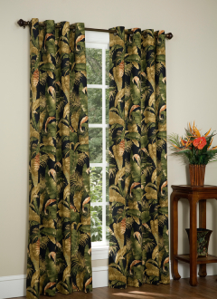 La Selva, a tropical delight filled with exotic plant life in warm colors of Green, Orange Mist, and Gold on a rich black ground. Another exclusive by Thomasville! Made in U.S.A.