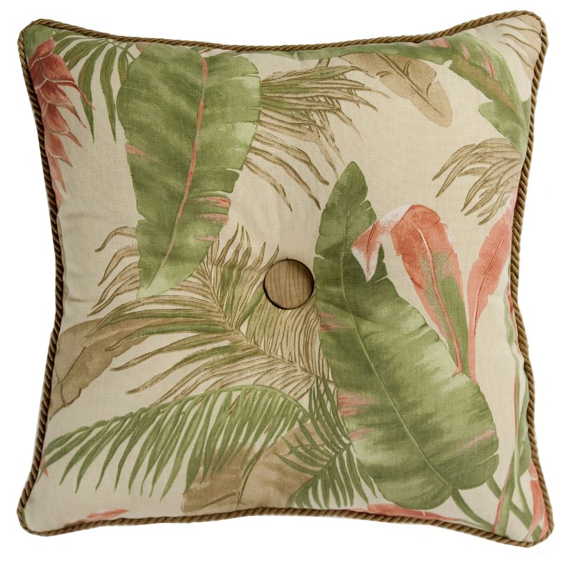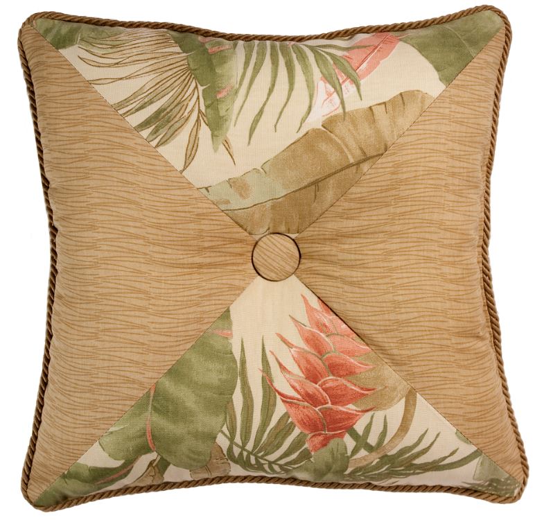 Square Pillow – Triangle Cut – 18″ x 18″ with button detail.  Back is All-over La Selva pattern.