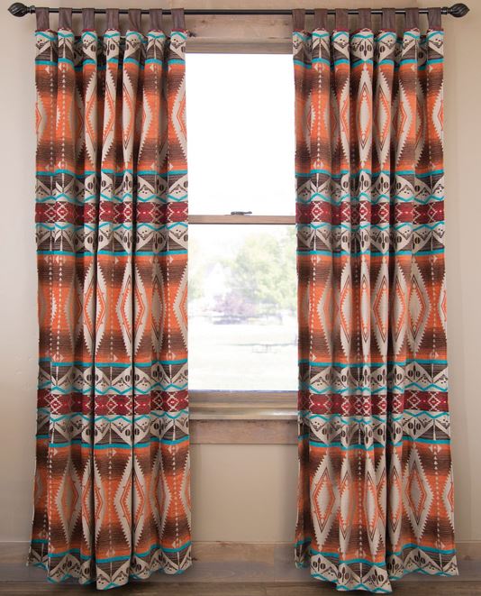 Bright Southwest Colors adorn these Mojave Sunset Drapes by Carstens Inc. Polyester Chenille woven fabric. Unlined. Dry clean.