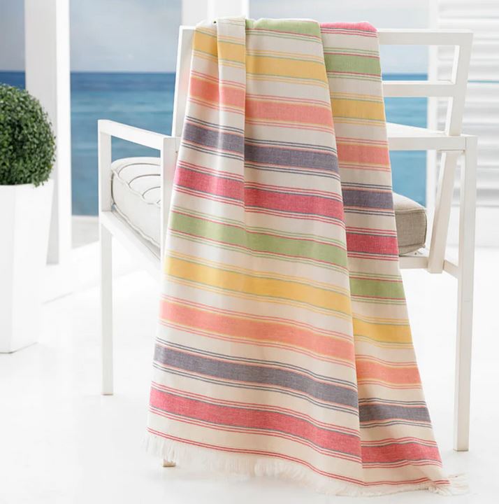 With colorful stripes and eyelash fringe details, the Pareo Fouta Beach Towel is the epitome of chic summer style.