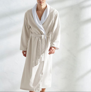 this robe has a soft polyester microfiber shell with a cotton/poly terry lining.