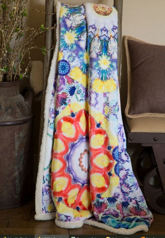 Dreamy large flowers plastered allover this Plush Sherpa Throw. Washable.