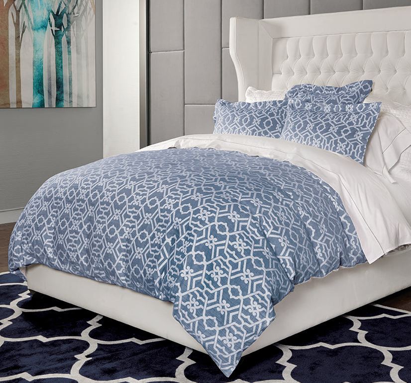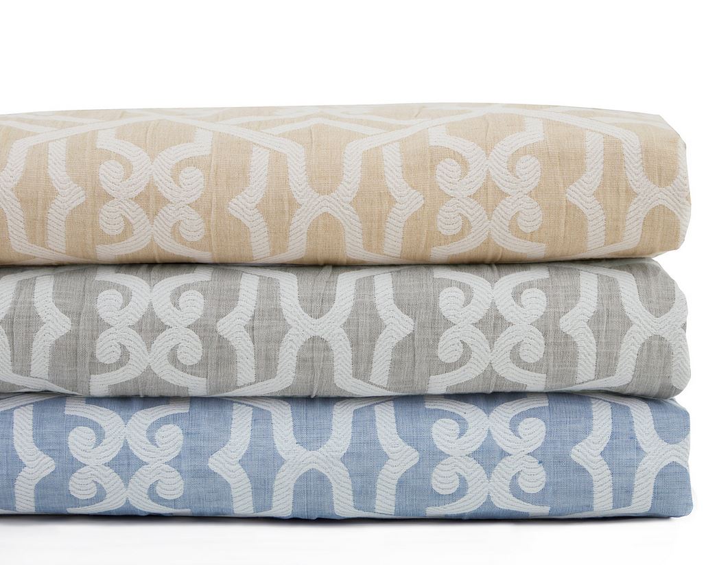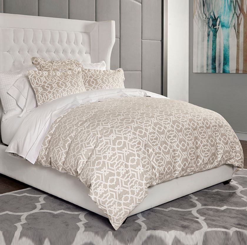 The matching shams are also crafted from the linen and cotton jacquard, creating a cohesive look for the bedding ensemble.