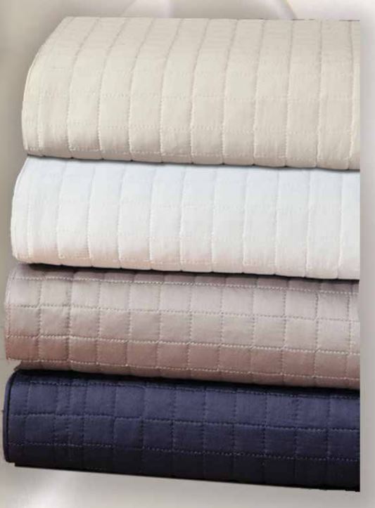 100% Cotton Sateen in 1″ square quilting with a piped finished. Washable.