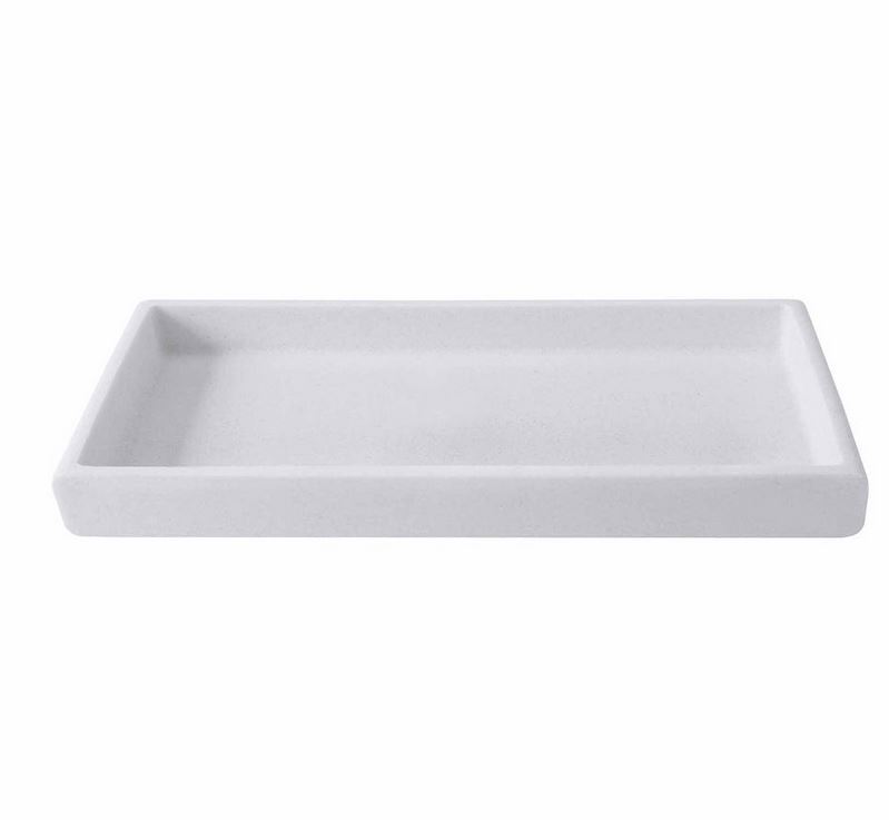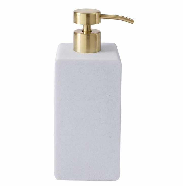 A collection full of elegant appeal, the micro-terrazzo used to create the Verbier Bath Accessories from Kassatex is a mix of tumbled stone and resin creating a subtle glisten that calls to mind the fresh alpine snow of this collections’ namesake. With rounded edges featured on each accessory, this set evokes a natural, cool and calming feel each time you step into your spa. The lotion dispenser features a golden-colored top pump for an added touch of opulence against the sparkling white color of this serene collection. Not dishwasher safe.
