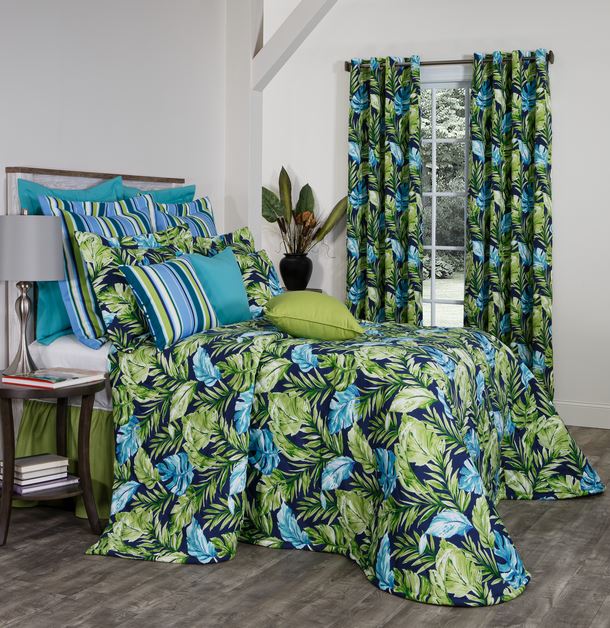 Bring the beauty of the tropics into your home with the Zealand Bedspread Collection from Thomasville at Home. Featuring a rich navy background adorned with lush teal, cream, and green tropical leaves, this collection creates a bold yet soothing retreat. Crafted from high-quality fabrics for both comfort and durability, the Zealand Collection includes coordinating bedspreads, shams, decorative pillows, and window treatments. Whether you’re looking to refresh your space with a coastal-inspired look or add a touch of island elegance, this collection provides the perfect blend of style and relaxation.